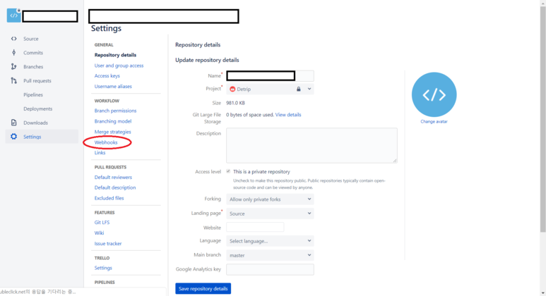 회사 repository이기 때문에 중요한 부분들은 가렸습니다.
