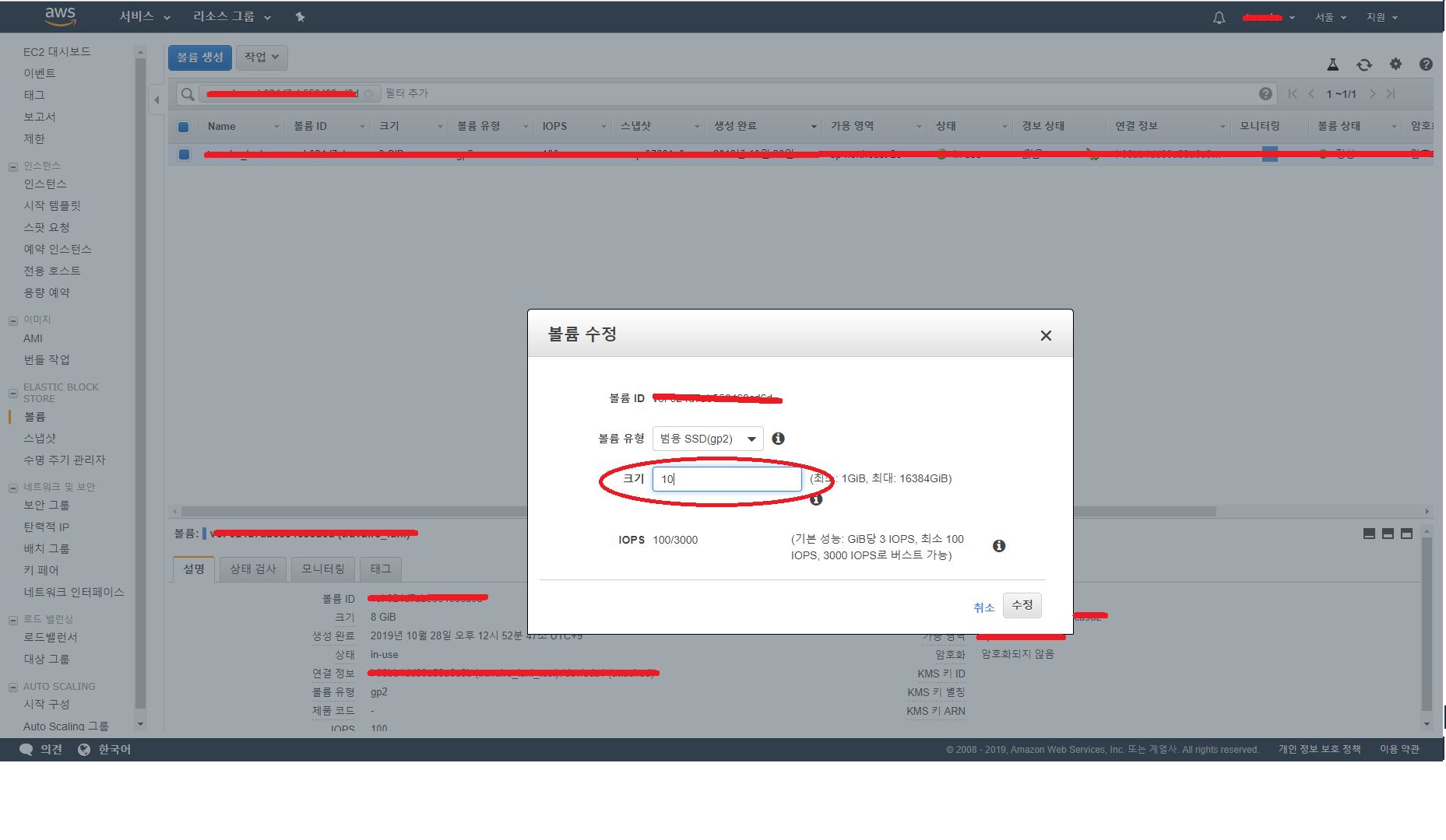 (입력하는 숫자는 현재 ec2인스턴스의 용량을 포함하는 총 용량을 말합니다. )
