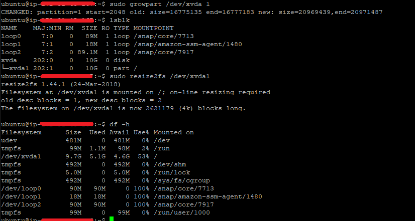 $ sudo resize2fs /dev/xvda1