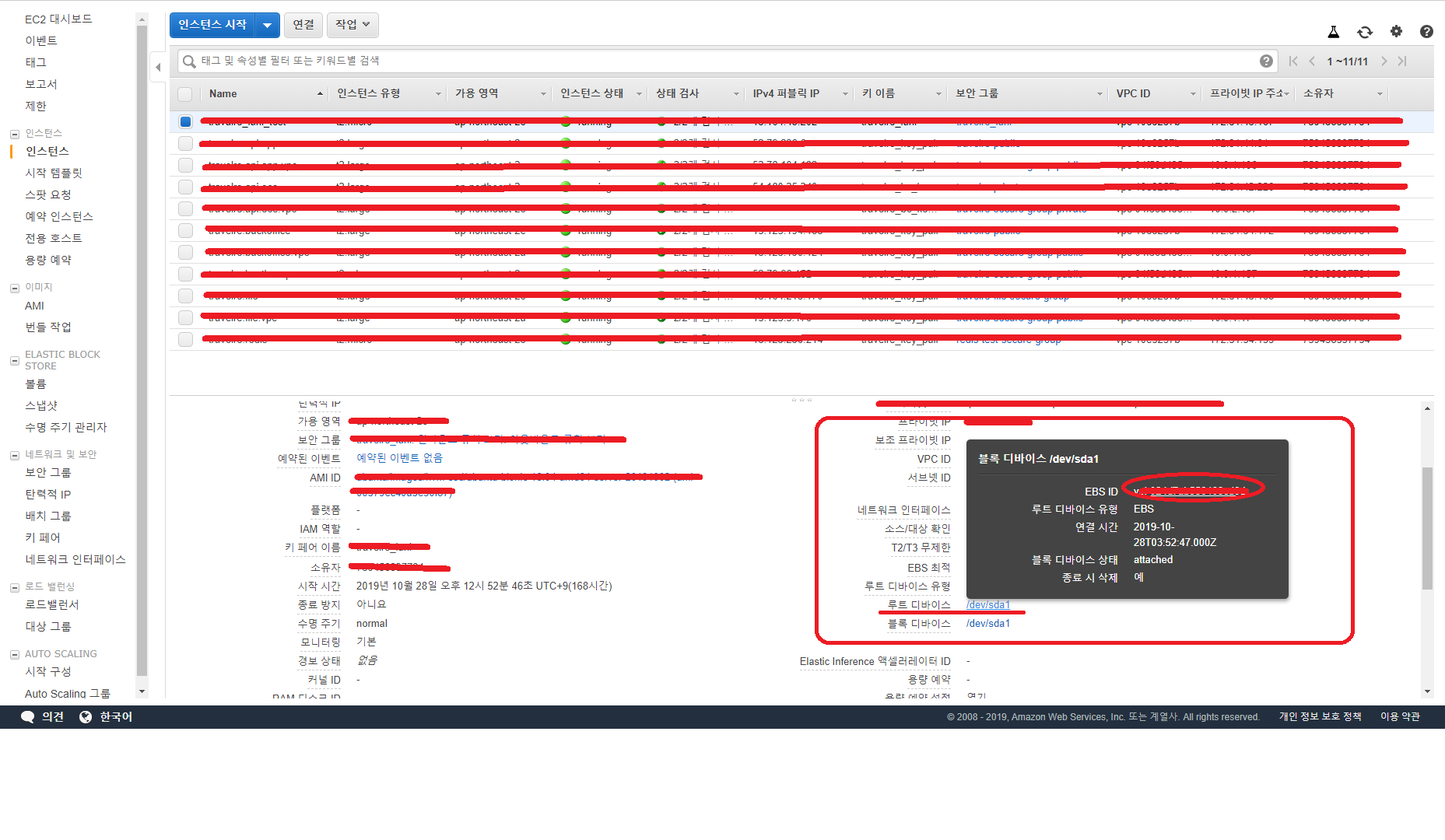 "EBS ID"를 클릭하여 들어온 화면에서 인스턴스를 오른쪽 마우스로 클릭하면 나오는 창에서
