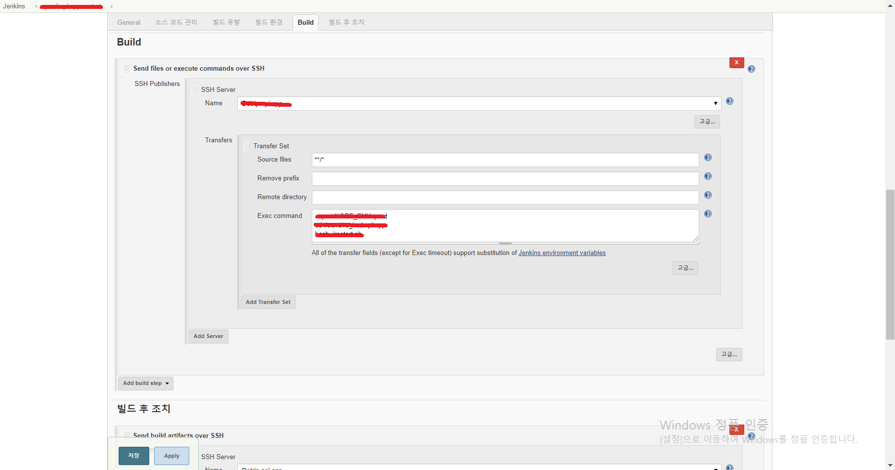 2. jenkins 설정에서 remote 서버의 정보를 입력한다.
