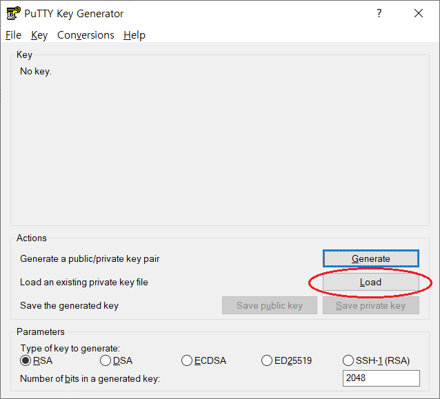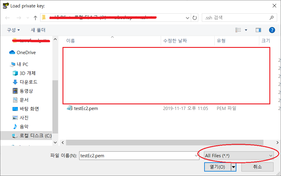 실행하여 Load 버튼을 클립하면 ec2에서 생성한 키를 선택하는 창이 뜹니다.