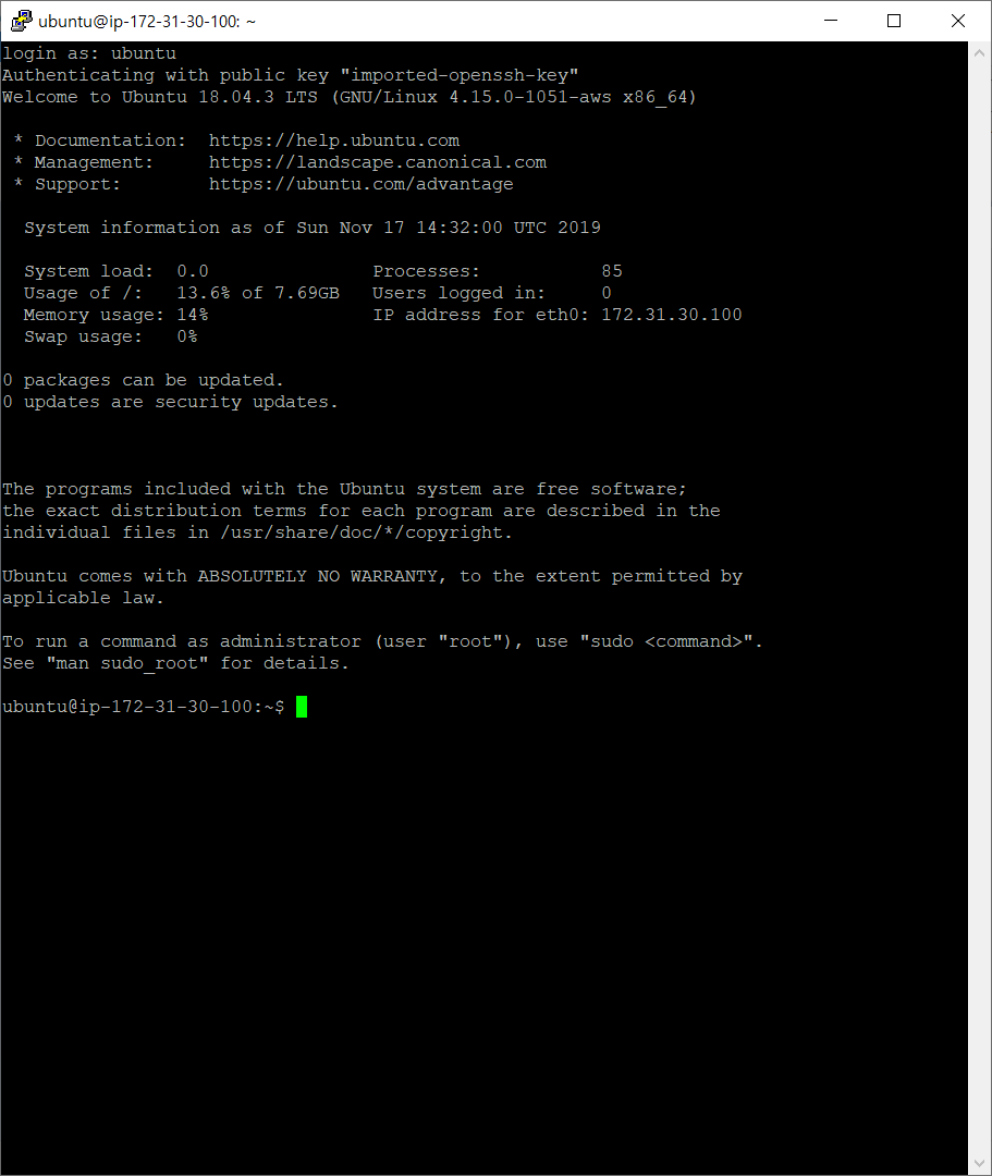 에서는 "ubuntu"를 입력하여 접속을 하면 됩니다.