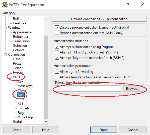이 경로로 들어가면 오른쪽에 키를 넣어주는 란이 있는데 아까 puttyGen에서 생성한 ppk 키를 넣어줍니다.