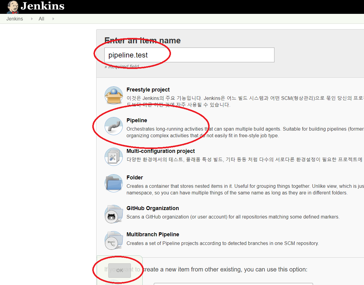 이번 포스팅에서는 간단하게 jenkins가 기본적으로 제공하는 pipeline을 사용해 보고