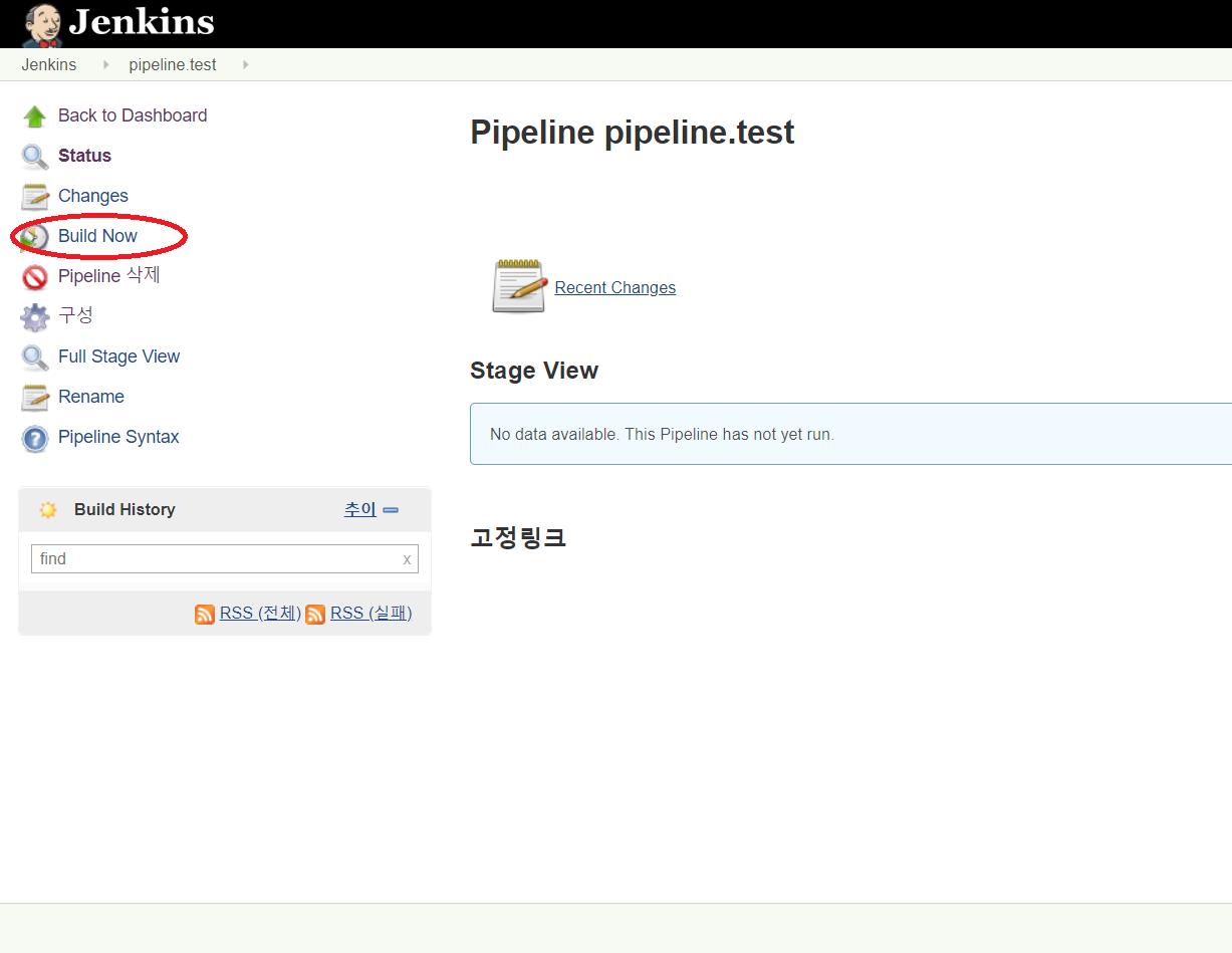좌측에 "Build Now" 버튼을 클릭하여 build를 진행합니다.