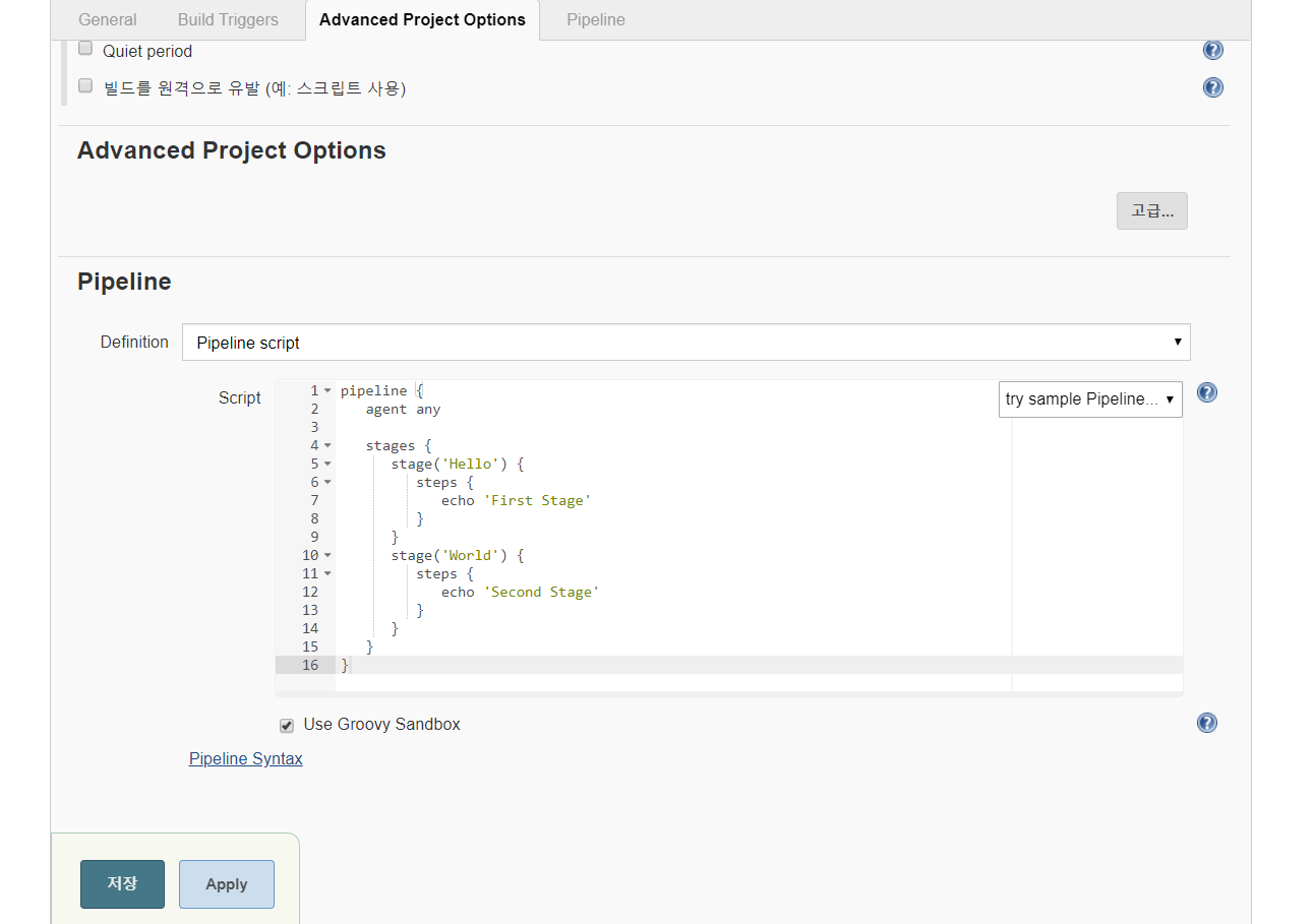 지난 포스팅에서는 jenkins pipeline에서 제공하는 hello world 예제를 통해